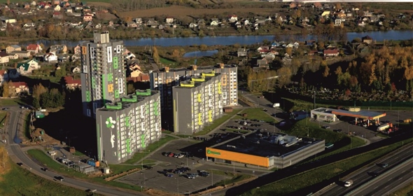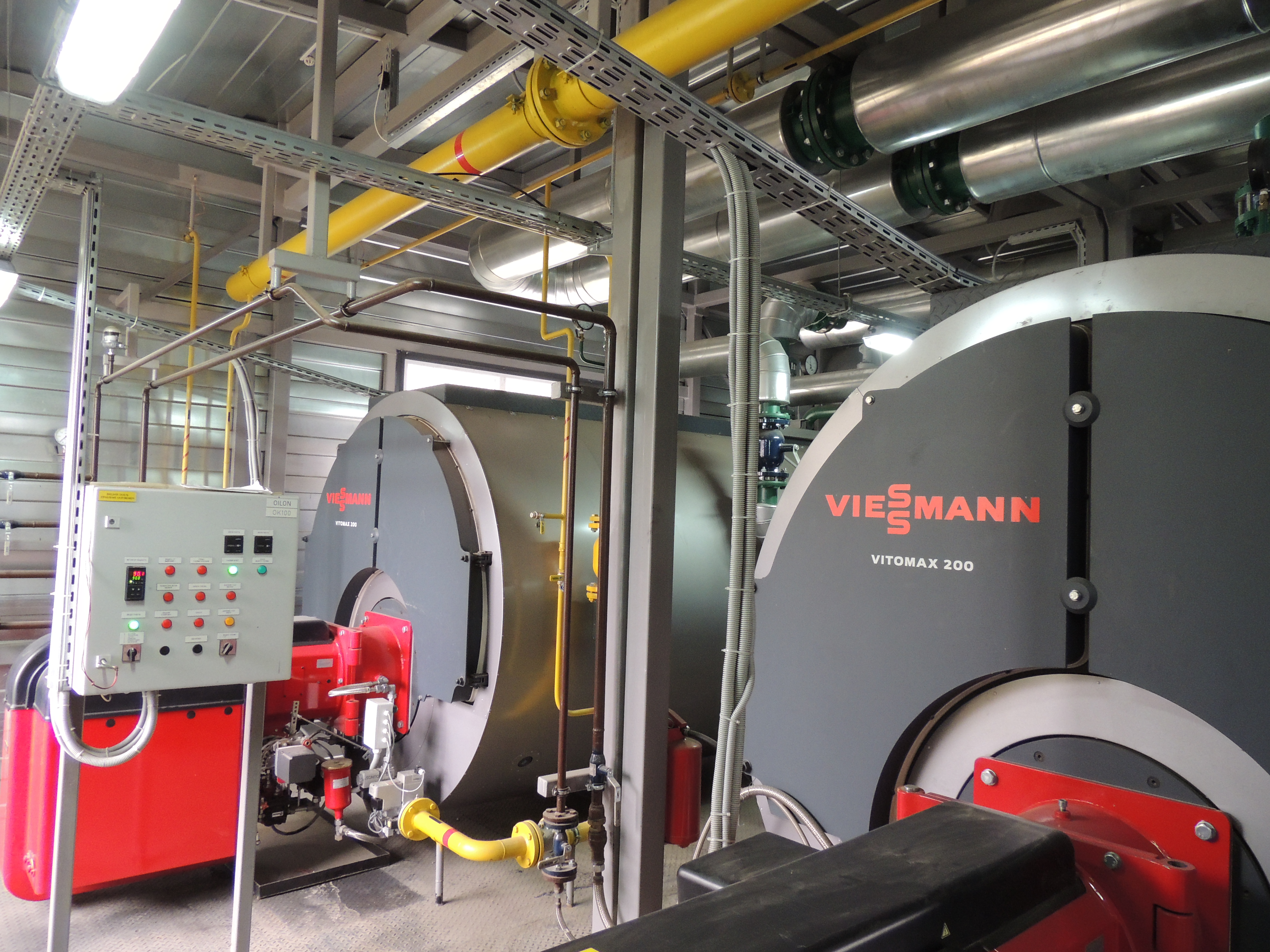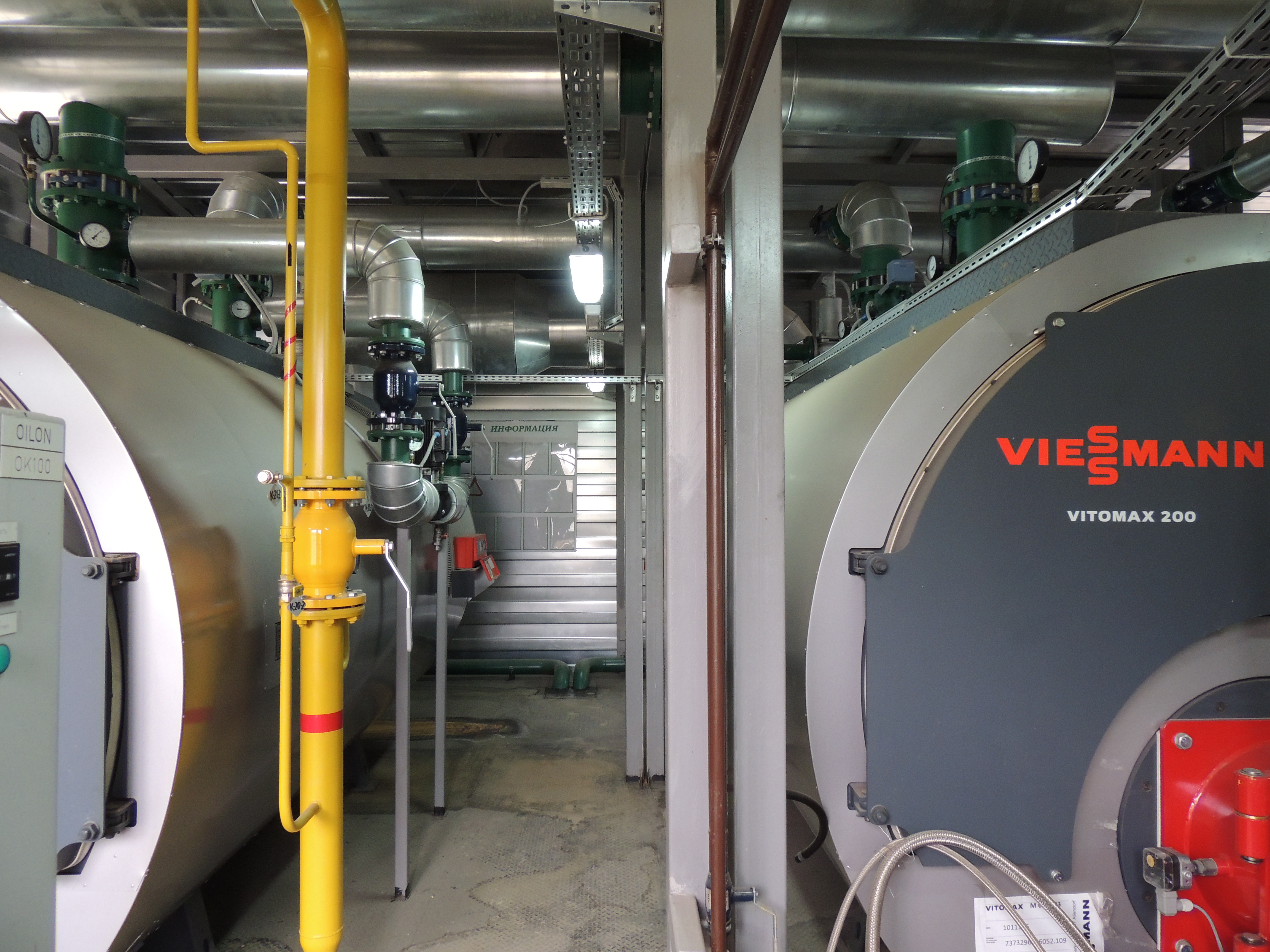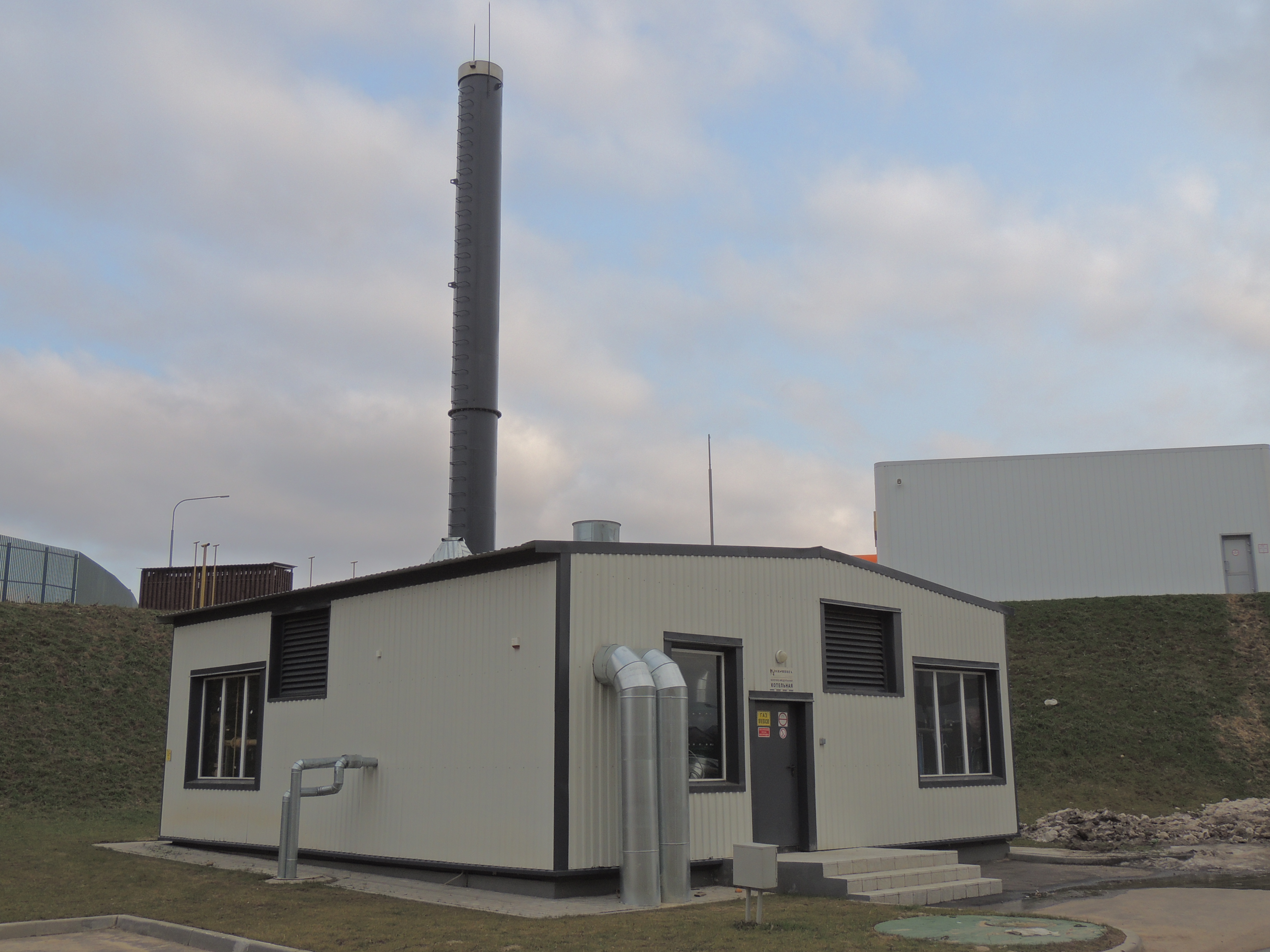 Блочно-модульная котельная объекта, с двумя котлами Vitomax 200 LW мощностью 3,5 MВт каждый, снабжает теплом сразу несколько объектов жилой застройки и инфраструктуры: четыре многоквартирных панельных дома (три 10-этажных и одну 19-этажную высотку), АЗС «А- 100» с мойкой и магазином и продуктовый супермаркет.