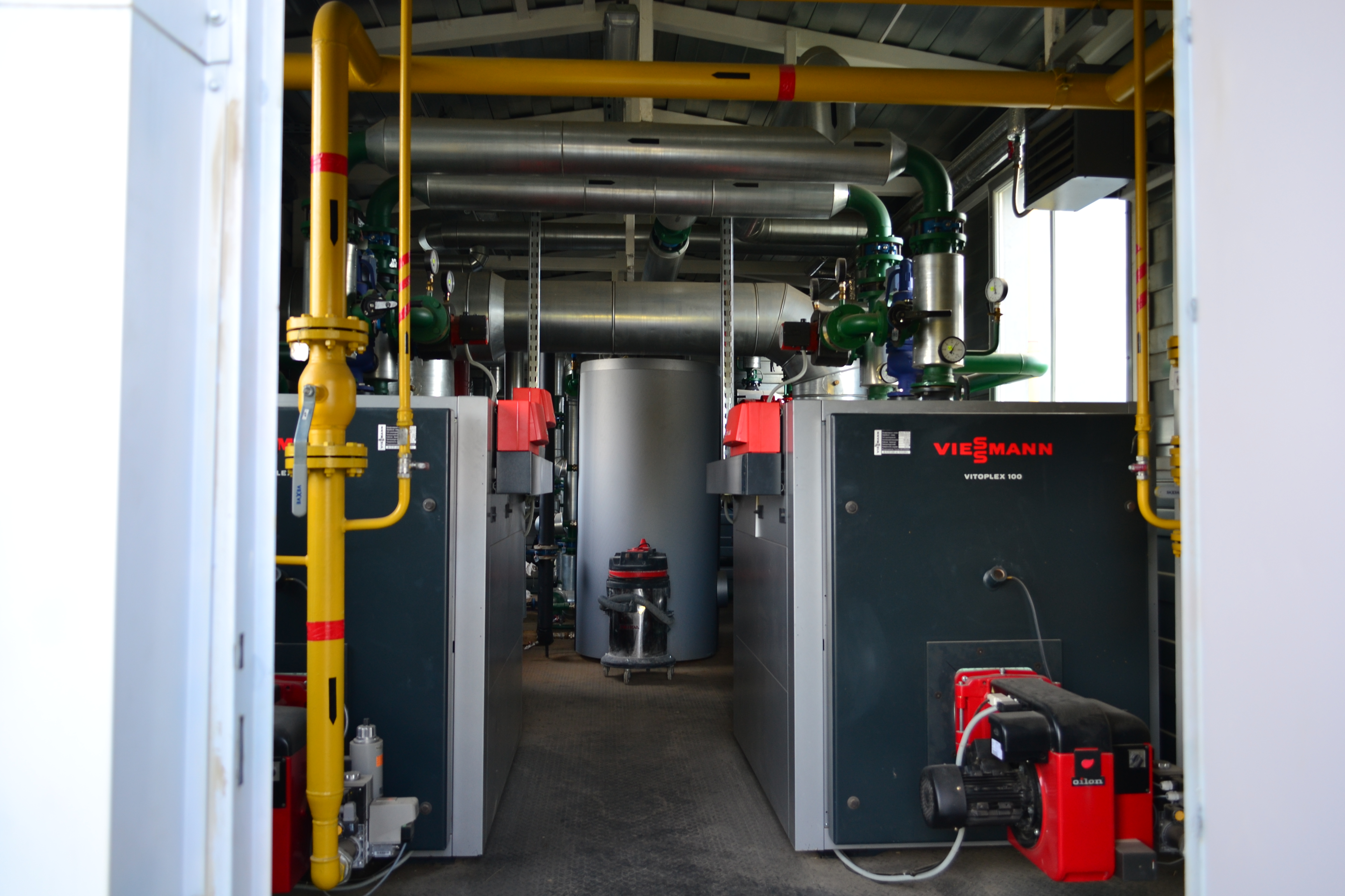 Теплоснабжение торгового центра общей площадью 13 750 м2, в составе гипермаркета, специализированных магазинов, пункта общественного питания, обеспечивает каскад из двух котлов Vitoplex 100 PV1 мощностью 720 кВт каждый. Экономичная и экологичная работа автономной котельной торгового центра происходит за счёт выработки теплоты в погодозависимом режиме.